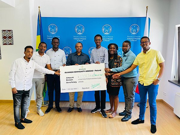 KWIBOHORA29: ubuyobozibwa RCA Poland bwashyikirije Amb Anastase Shyaka wa Rwanda in Poland, angana na miliyoni 5 frw y'umusanzu wabo mu Bwisungane mu Kwivuza. uru rubyiruko rwiganjemo abanyeshuli biga muri Polonye.